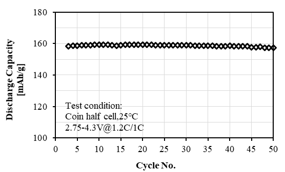 L-5050產品應用:用于18650或方型電池,4.2V下測試,1C放電克容量為161mAh/g,循環性能:1C/1C,2000圈≥80%可用于動力汽車及電動工具。