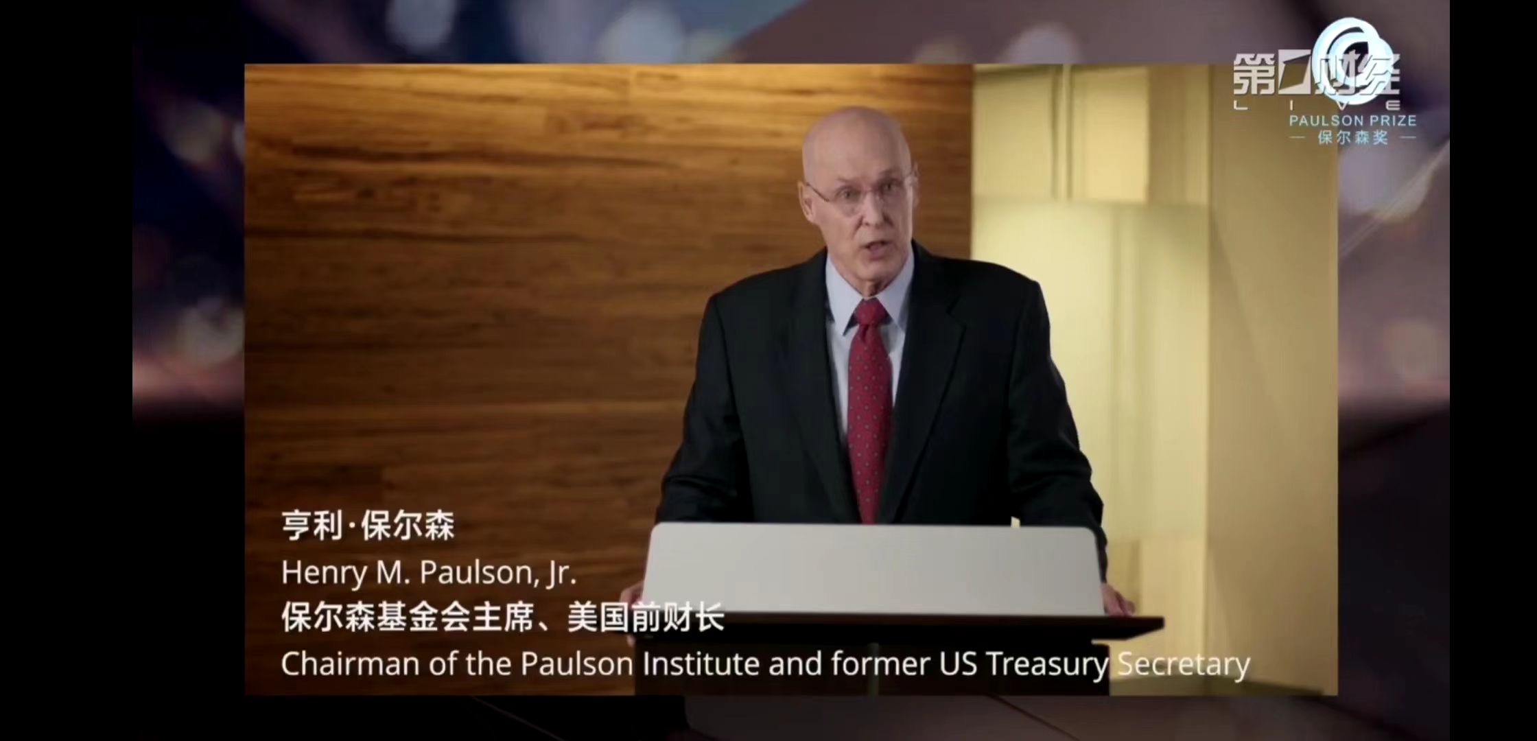 圖1保爾森基金會主席、美國前財長亨利·保爾森致辭