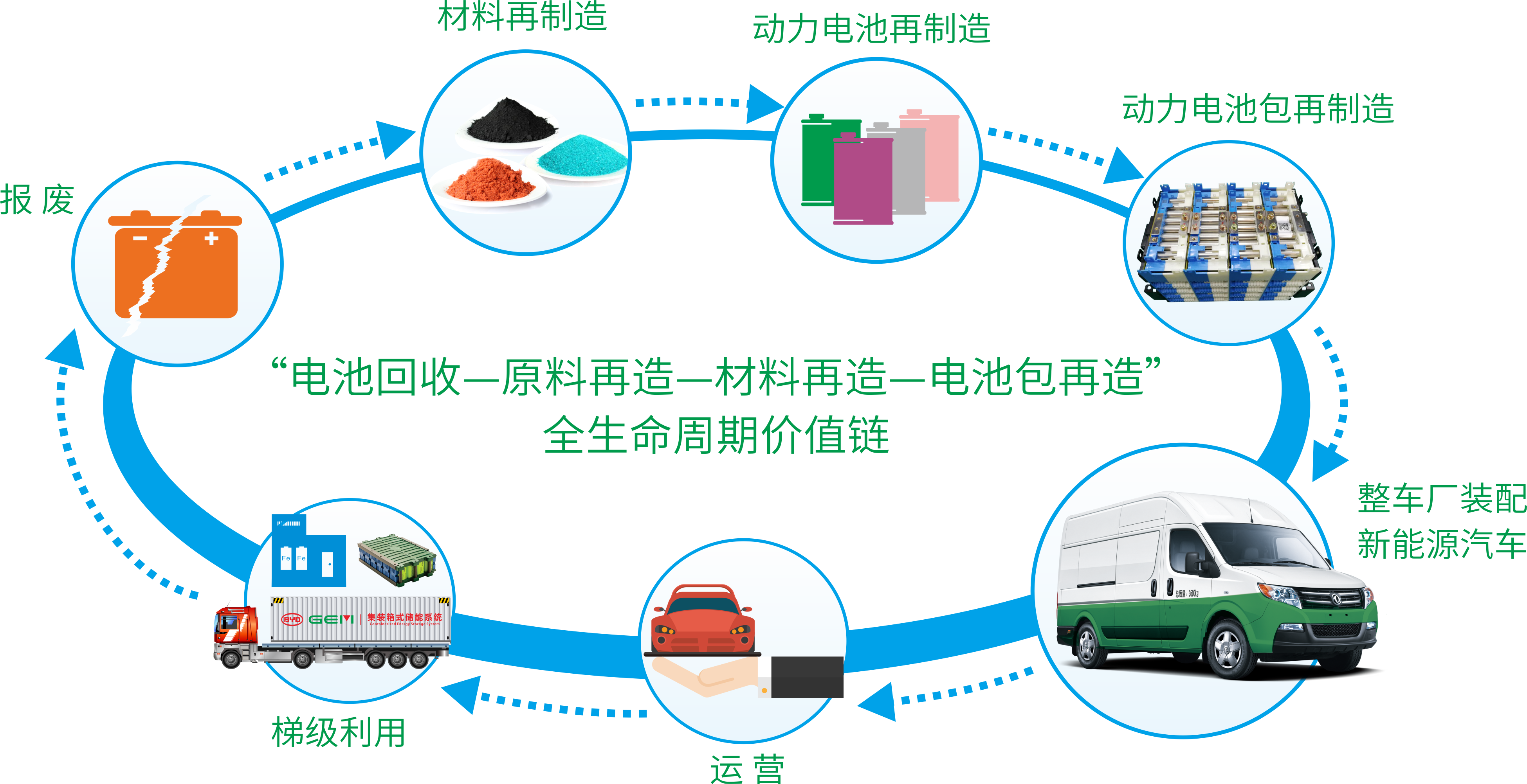 廢舊電池隨意丟棄與不當處理造成的環境污染與資源浪費現象,已經成為我國環境保護和資源可持續發展領域面臨的重大難題。格林美十年磨一劍,建成完善的廢舊電池回收體系,不斷探索廢舊電池回收新模式,堅持一線回收十余年并不斷創新。在武漢市政府的政策激勵和綠色創新模式的市場運作下,公司累計回收2億多顆廢舊電池,約占武漢市報廢量的20%。同時,格林美與全球253家電池廠商及車企建立廢舊電池定向回收合作關系,構建“動力電池回收——梯級利用——資源化回收——材料再造——動力電池包再造”新能源全生命周期價值鏈體系,累計回收廢舊動力電池上萬噸,實現廢舊電池變廢為寶、循環利用。