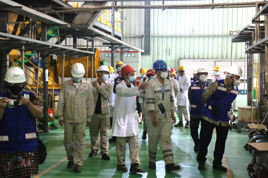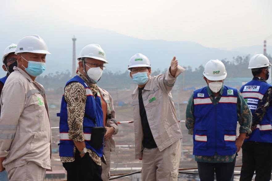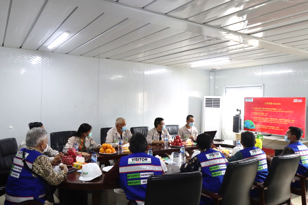 Satryo教授一行首先前往項目現場參觀考察,重點考察了青美邦實驗中心。焦華總經理簡要介紹了青美邦印尼鎳資源項目基本情況,許鵬云博士等詳細介紹了青美邦實驗中心的紅土鎳礦濕法冶煉中試線以及設施齊全的小試實驗室。Satryo教授饒有興致地詢問核心關鍵設備的相關技術問題,得知項目全部采用格林美自主知識產權的工藝方案時,贊不絕口,并對實驗室具備的濕法選冶實驗能力和項目全體成員在疫情中加緊施工趕進度的奮斗精神表示贊許。
