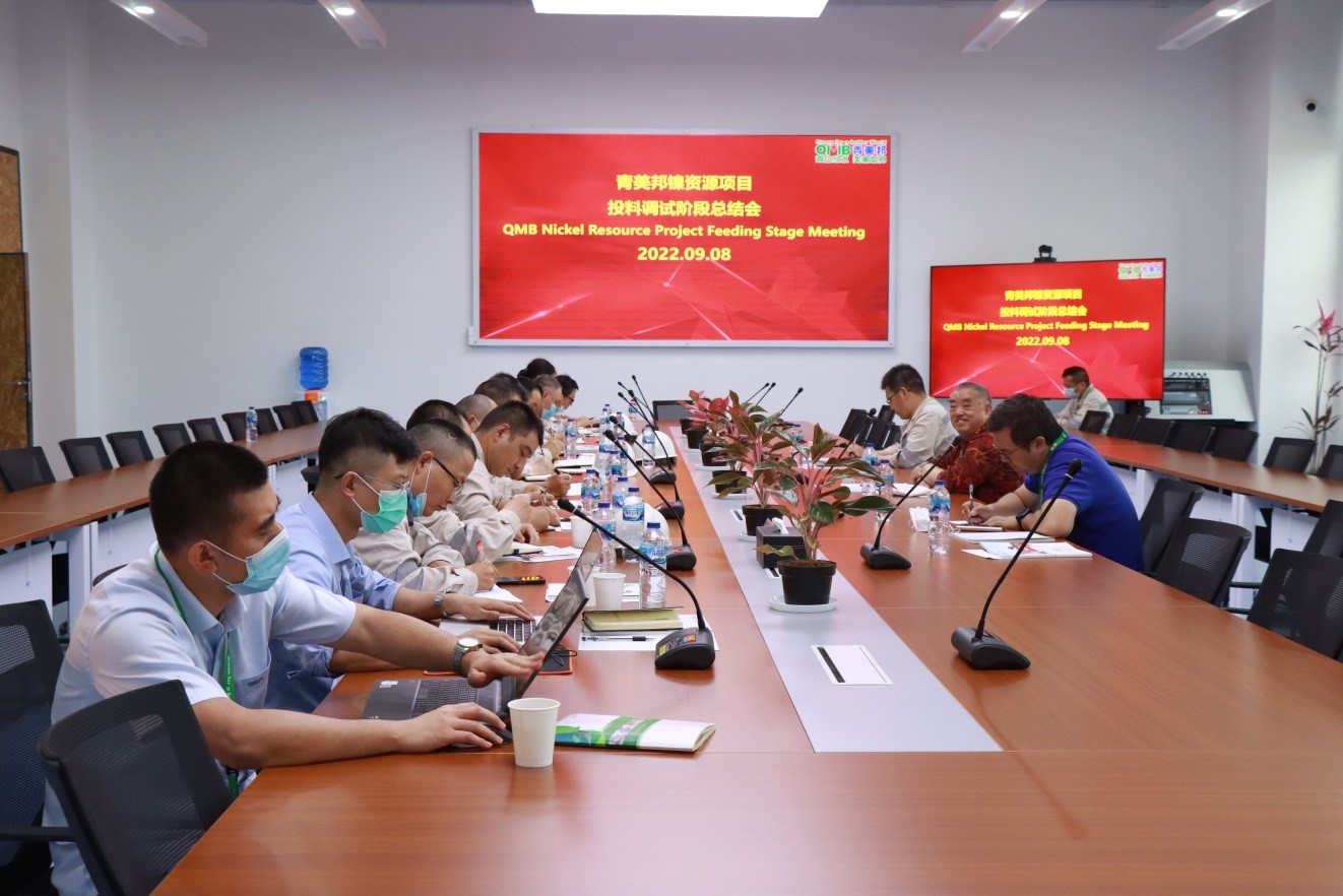隨后,許開華董事長組織青美邦主要管理人員召開投料調試工作階段現場總結會,對青美邦鎳資源項目建設以來的成就進行了總結回顧。一是青美邦項目完全采用自主設計、自主建設、自主調試,擁有完全自主知識產權,在蘇拉威西島上樹立了一座世界級的鎳資源工程項目的豐碑,詮釋著全球領先的“科技+綠色+智慧”的發展理念;二是在1060余畝的一期用地上,青美邦人通過采用模塊化的緊湊設計達到了規劃產能,一期二期總產能將超過7.3萬噸,從而形成了規模優勢,這種模塊化、緊湊化設計思路指導下帶來的鎳資源濕法冶煉項目投入產出明顯效益是青美邦二期投入產出的可靠保障,總體而言設計工作達到了世界先進水平;三是青美邦項目大膽采用國產化裝備,裝備水平向同類國際一流企業看齊,凸顯中國制造的可靠,為中國制造贏得信譽,青美邦鎳資源項目未來將繼續堅定走國產化裝備之路;四是青美邦項目建設水平與建設速度超出預期,全廠路網四通八達、管網錯落有致、工藝流程不折不返不斷,工程安裝質量達到了國際標準;全體青美邦的奮斗者以愚公移山的精神和逆行出海、頑強抗疫拼搏精神保障了建設速度,取得了不到兩年的時間便拉通產線并產出合格產品的卓越成就;五是投料調試非常成功!僅用了1個多月就把全部產線調試完畢,主體設備運行良好,并產出合格的MHP,進一步證明我們的設計水平、裝備水平與工藝技術水平是OK的。