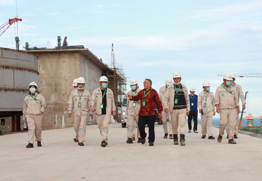 金秋的九月,像一個神奇的丹青妙手,在印度尼西亞蘇拉威西這座以紅土鎳礦聞名全球、形似“K”的投資熱島上潑墨出一幀多彩的青美邦畫卷:器宇軒昂的鎳工業博物館、智慧集成的中控中心、國際一流的紅土鎳礦研發中心、大氣磅礴的洗選礦系統、熱氣騰騰的高壓酸浸產線、錯落有致的CCD逆流洗滌車間、繁忙有序的成品車間……格林美青美邦項目一期已經成功建成,達到世界一流水平。在農歷中秋佳節即將來臨之際,集團黨委書記、董事長許開華教授不懼辛勞親赴印尼項目現場,視察項目一線、慰問青美邦全體建設勇士并主持召開了青美邦鎳資源項目一期投料調試階段總結會。