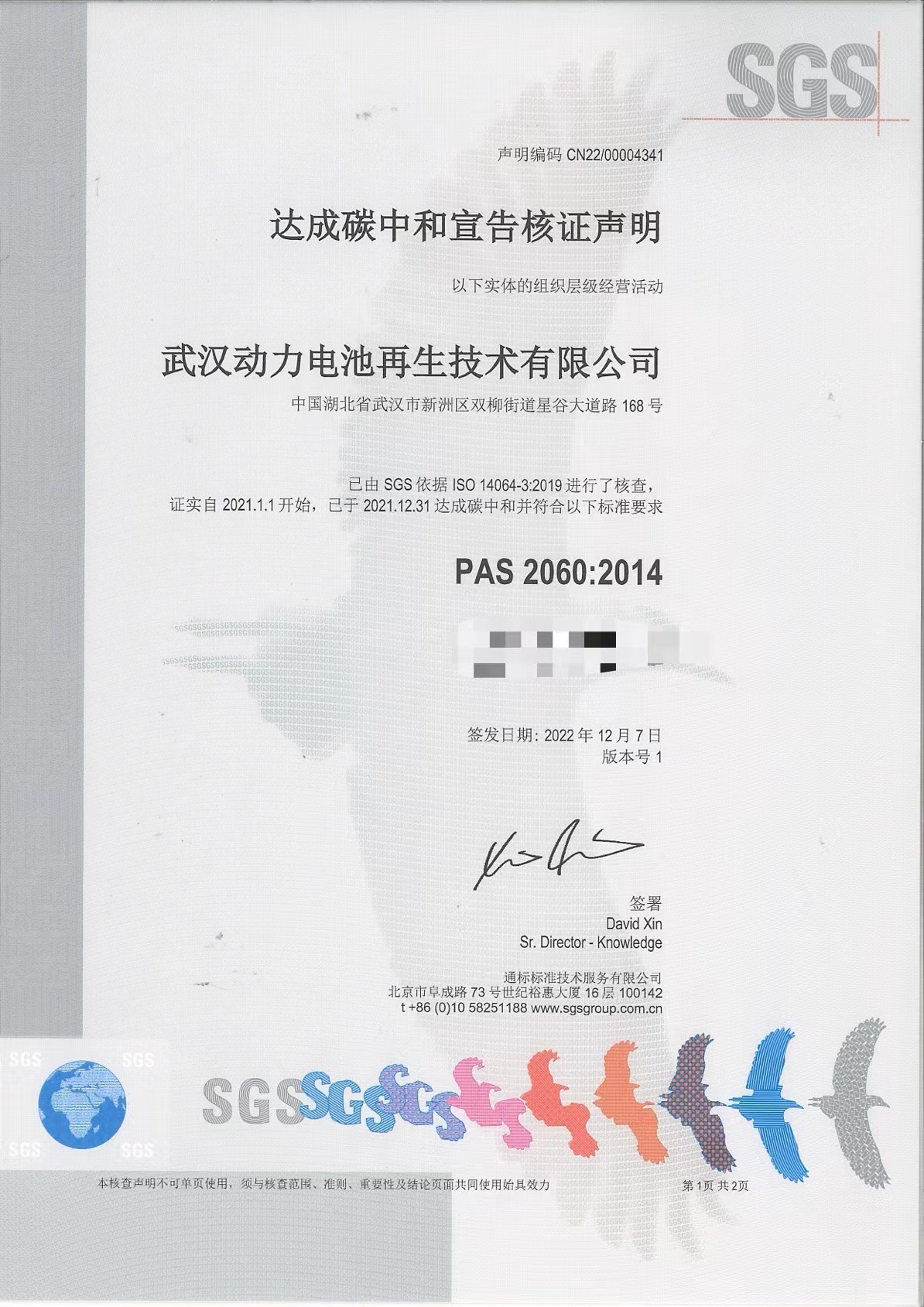 武漢動(dòng)力電池再生技術(shù)有限公司(以下簡(jiǎn)稱“武漢動(dòng)力再生”)通過(guò)通標(biāo)標(biāo)準(zhǔn)技術(shù)服務(wù)有限公司(以下簡(jiǎn)稱“SGS”)碳中和認(rèn)證,獲頒碳中和證書(shū)。此次認(rèn)證按照國(guó)際通用標(biāo)準(zhǔn)ISO14064-3:2019及碳中和宣告規(guī)范標(biāo)準(zhǔn)PAS 2060:2014,武漢動(dòng)力再生通過(guò)近零碳排放園區(qū)試點(diǎn)建設(shè)部署,打造低碳示范場(chǎng)景,大大降低了溫室氣體排放,園區(qū)實(shí)現(xiàn)碳中和。